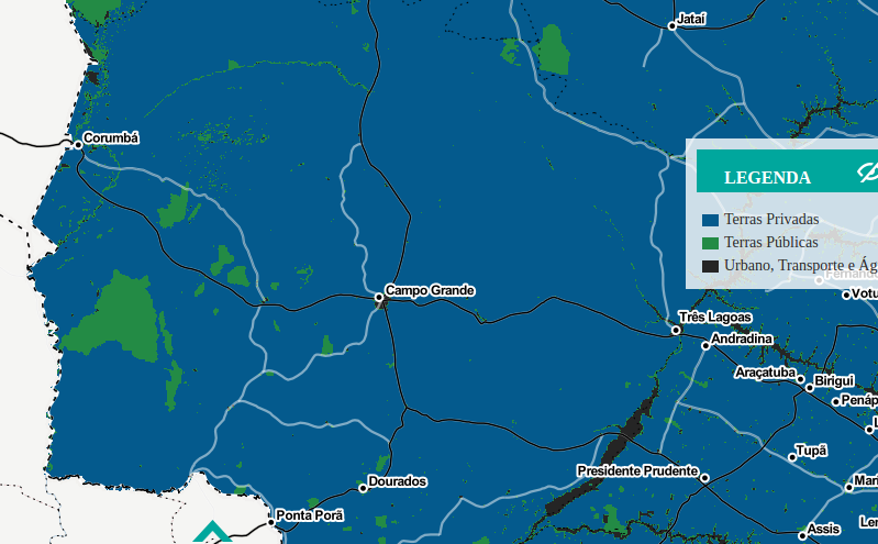 Palco de um dos maiores conflitos indígenas do país, Mato Grosso do Sul tem 92% do seu território em terras privadas. É a maior abrangência de propriedades particulares do Brasil. Os dados são do Atlas Agropecuário, um projeto do Imaflora em parceria com o GeoLab, da Escola Superior de Agricultura Luiz de Queiroz (Esalq) da Universidade de São Paulo (USP).