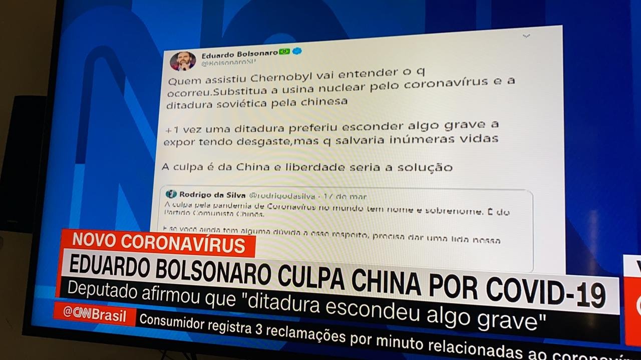 Logo depois das declarações de Eduardo nas redes, a Embaixada da China usou as redes sociais para responder a ele: “Suas palavras são extremamente irresponsáveis e nos soam familiares. Não deixam de ser uma imitação dos seus queridos amigos. Ao voltar de Miami, contraiu, infelizmente, vírus mental, que está infectando a amizade entre os nossos povos”.