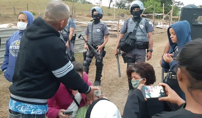 Em plena pandemia, policiais armados e tratores. Mulheres e crianças de 50 famílias de Piracicaba (SP) sofreram um despejo na manhã desta quinta-feira (07), em uma área de pouco mais de 1 hectare. Sem ter para onde ir, caminhavam pelo local. Algumas com máscaras, outras sem. A imagem principal mostra mulheres sentadas, em desespero, diante de olhares dos policiais.
