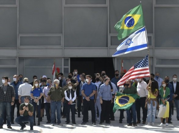 Aos gritos de “cloroquina” e “queremos trabalhar”, os apoiadores do presidente marcharam até o palácio, onde receberam ordens para guardar as dezenas de faixas e cartazes pedindo o fechamento do Congresso e do Supremo e a volta da ditadura militar, do AI-5 e da tortura a opositores. A farsa foi louvada por Bolsonaro, que destacou o fato de não ver “nenhuma bandeira que atente contra nossa Constituição”.