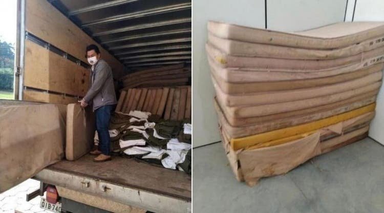 A promessa feita aos indígenas era a da entrega de colchões novos que estavam guardados em uma unidade da Sesai em Ipuaçu, no oeste do estado. O Exército era responsável por buscar o material e entregá-lo na TI. “A Sesai disse que esse material não tinha sido usado”, explica Faustino Criri, da aldeia Palmeira. “Achamos que era um material novo, fechado. Quando chegou em José Boiteux é que vimos que os colchões não eram adequados”.
