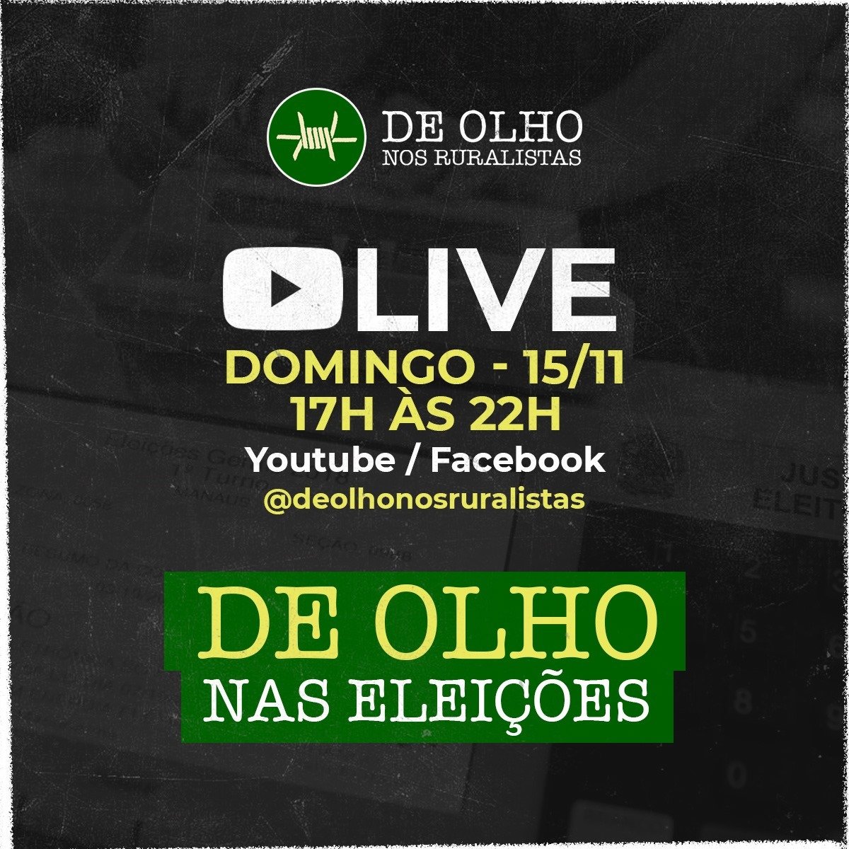 Assim que a votação se encerrar na maior parte do país, às 17 horas, De Olho nos Ruralistas dará início à uma programação especial que debaterá os resultados e as projeções para o futuro da situação ambiental, social e alimentar dos brasileiros.