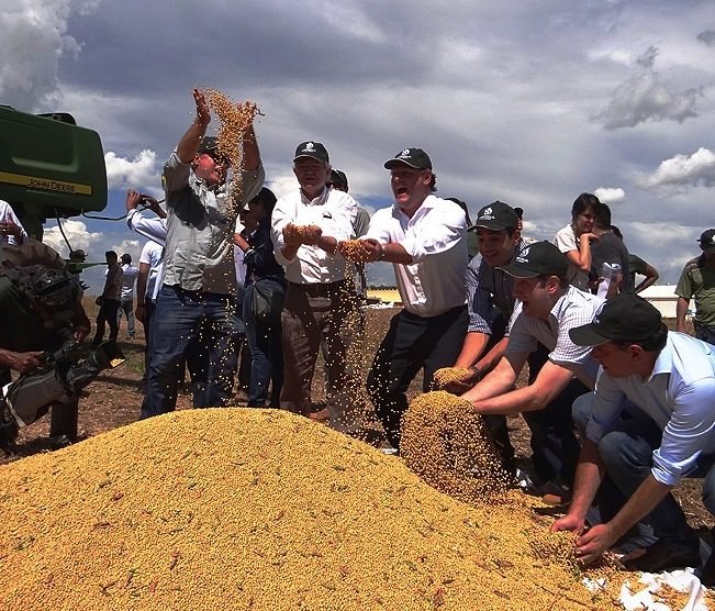 Foto principal (Divulgação/Aprosoja): Carlos Fávaro (terceiro, da esq. para dir.) em evento de lançamento da colheita de soja