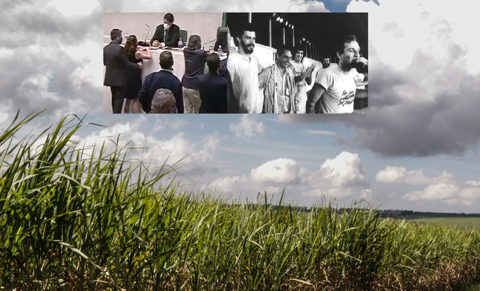 Imagem principal: Fernando Cury na Assembleia (Reprodução), FHC nas Diretas Já (Reprodução) e canavial em Botucatu (De Olho nos Ruralistas)