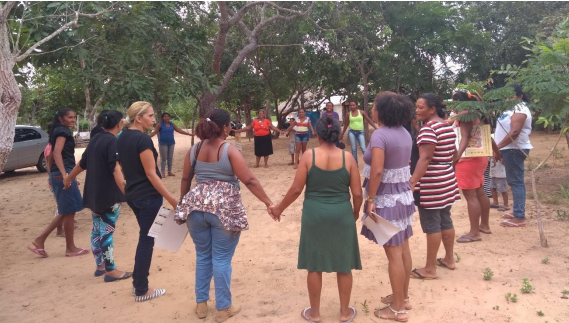 Foto principal (Valéria Santos): Mulheres da Gleba Tauá em reunião em 2018