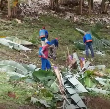 Em abril, foi gravado mais um vídeo em que mostra uma ação conjunta de destruição de um bananal da comunidade por meio da pulverização de agrotóxicos: