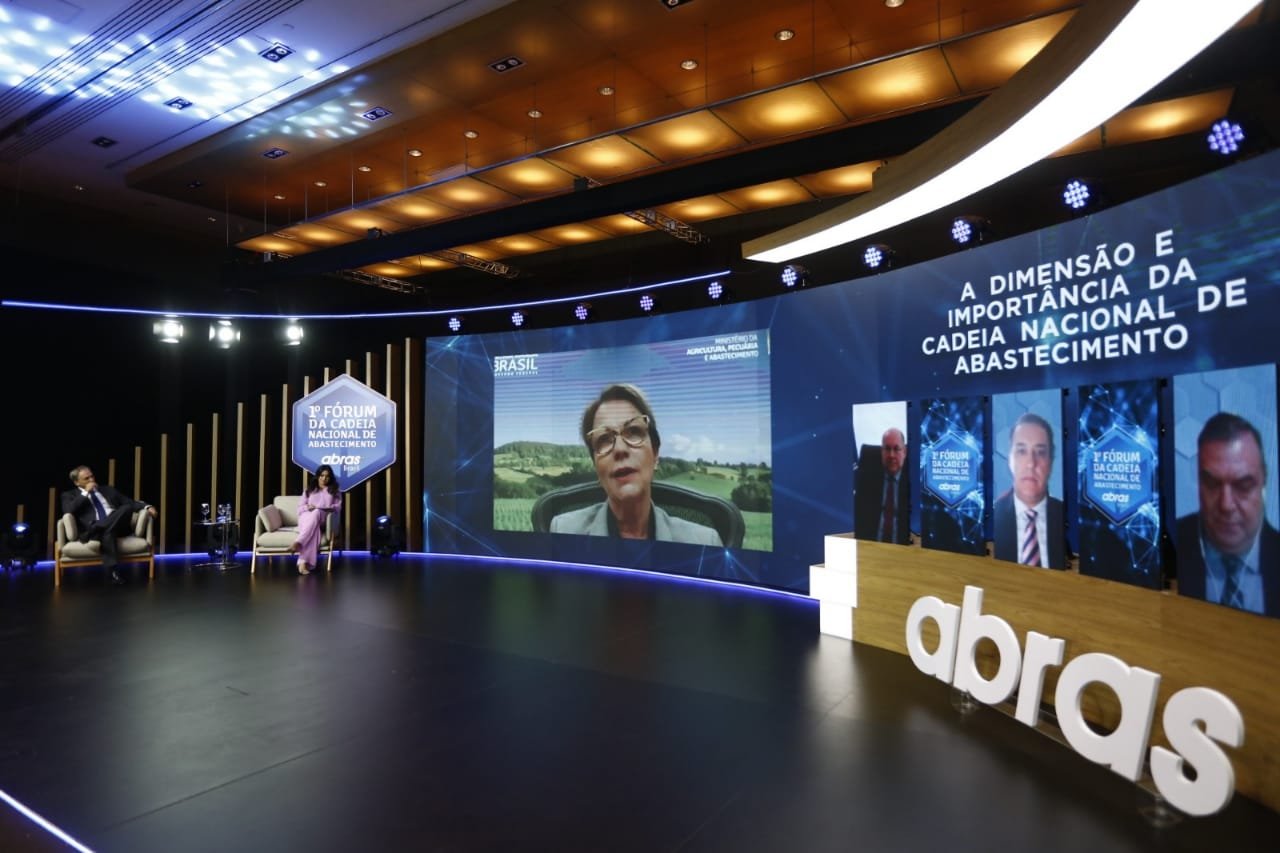 Foto principal (Divulgação): ministra do Agricultura participa do 1º Fórum da Cadeia Nacional de Abastecimento, promovido pela Associação Brasileira de Supermercados