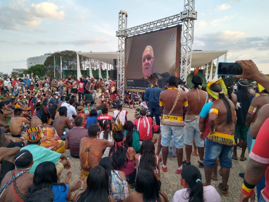 O Acampamento Luta pela Vida foi instalado ao lado da Esplanada dos Ministérios. Além da tese em debate no STF, seus integrantes denunciam outros projetos anti-indígenas em trâmite no Congresso, bem como o agravamento das violências dentro e fora dos territórios tradicionais.