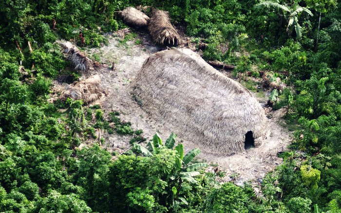 Foto principal (Funai): Maloca na Terra Indígena Vale do Javari, no Amazonas