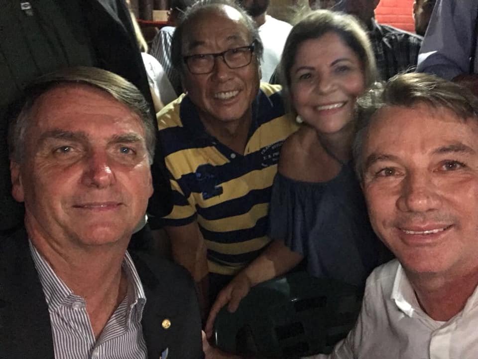 Foto Principal (Facebook/Izabel Itikawa): Bolsonaro e Demarium com os fazendeiros Nelson e Izabel Itikawa, pais de Leonardo Massao Itikawa