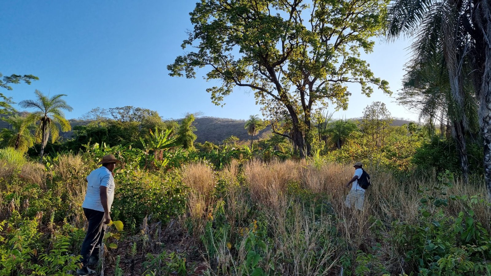 Foto principal (Halanna Aguiar/De Olho nos Ruralistas): líderes quilombolas percorrem roça no “Fundão”, que sofre com ação de fazendeiros