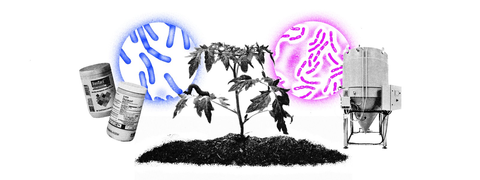 No site da Sumitomo, são quatro os produtos classificados como “inseticida biológico“, cada um com uma cepa de Bacillus thuringiensis distinta. O micróbio produz um cristal que, ao ser ingerido pela lagarta, interrompe seu processo de digestão. O inseto morre antes de se desenvolver completamente.