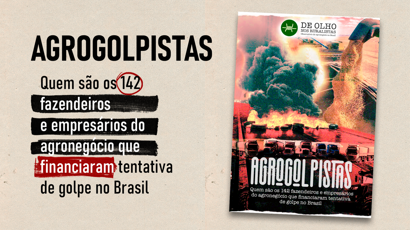 Dossiê do De Olho nos Ruralistas, “Agrogolpistas” consolida listas de fazendeiros e sócios de empresas indiciadas por bloqueio de rodovias, acampamentos e o 8 de janeiro; impunes, sojicultores de MT, GO e BA têm contratos com BTG Pactual e Syngenta