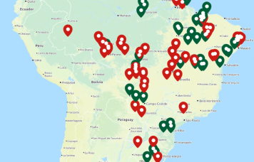 De Olho nos Ruralistas elaborou mapa que localiza, por município, as propriedades rurais declaradas por deputados e senadores; primeira