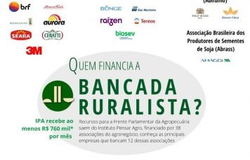 Empresas como Bayer, Basf, BRF, JBS, Bunge, Syngenta e Cargill compõem as associações do agronegócio cujos recursos custeiam o