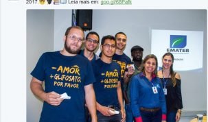 E ainda fazem camiseta com o pedido; pesticida mais consumido no mundo, glifosato é apontado por muitos pesquisadores como